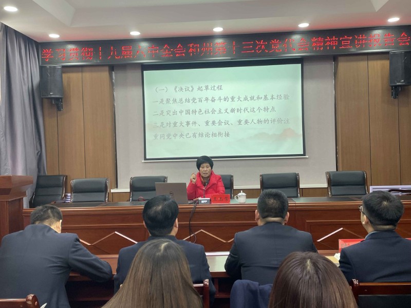 12月7日下午,临夏州农投集团组织全体干部职工,举办了“学习贯彻党的十九届六中全会和州第十三次党代会精神”辅导宣讲报告会,邀请州委宣讲团第四组成员、中共临夏州委党校文史教研室教授王玉芳作了题为《以史为鉴 开创未来 为实现中华民族伟大复兴中国梦不懈奋斗——党的十九届六中全会及州第十三次党代会精神解读》的宣讲报告。